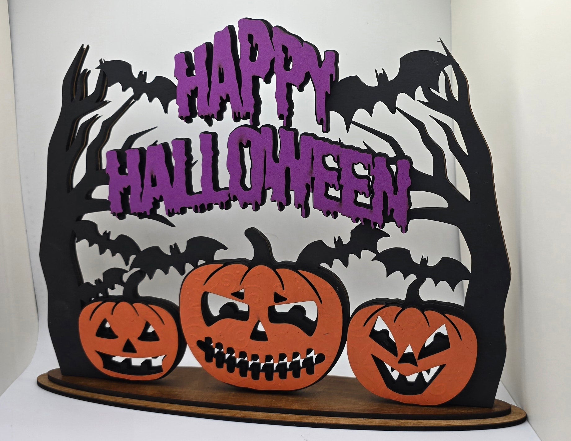 Get ready to spook up your space with our Halloween Sign! Measuring a perfect 11 inches by 8 inches, this festive sign is sure to add a delightful touch of eerie charm to your Halloween decorations. The design features grinning jack o'lanterns with their iconic carved faces, casting an invitingly spooky glow. Bats flutter around the edges, adding a touch of nocturnal mystery to the scene.